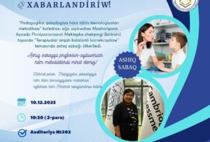 2026-jıl 7-mart kúni 8-mart – Xalıqaralıq hayal-qızlar bayramı múnásibeti menen Qaraqalpaqstan Respublikası Pedagogikalıq sheberlik orayı…