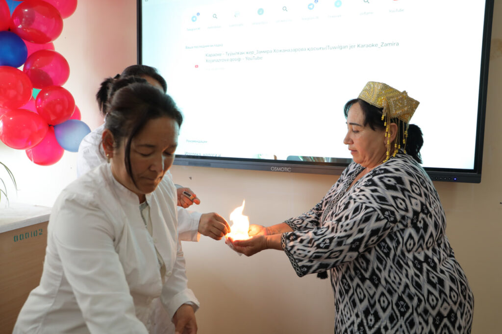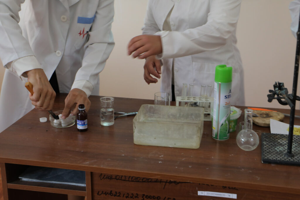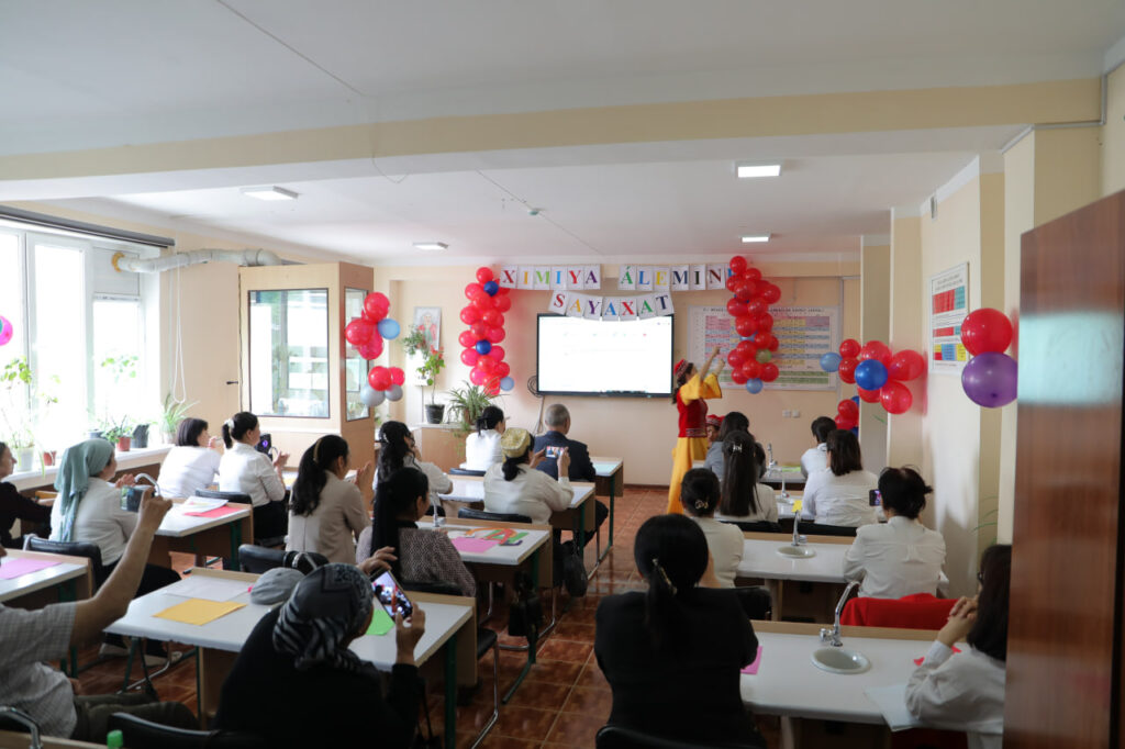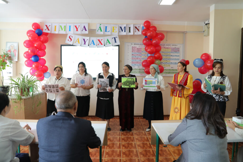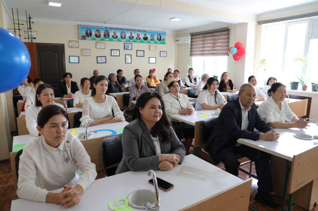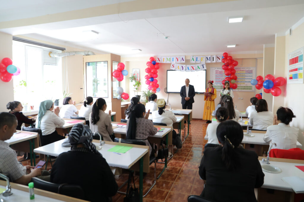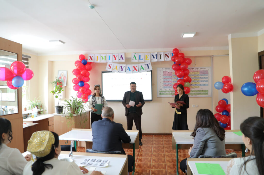 ANÍQ HÁM TÁBIYIY PÁNLER METODIKASÍ kafedrası tárepinen “Ximiya álemime sayaxat” atamasında ruwxıy-aǵartıwshılıq ilaj shólkemlestirildi. Ilaj dawamında tıńlawshılar tárepinen hár qıylı kórkem hám ilimiy shıǵıwlar kórsetildi. Sonıń ishinde, elementler haqqında qosıq oqıldı, milliy ayaq oyın atqarıldı hám “Elementler oyını” arqalı ximiyalıq elementlerdiń qásiyetleri saxnalıq talqılawda sáwlelendirip berildi. Sonday-aq, “Ximiya hám tábiyat” atamasındaǵı saxnalıq kórinis arqalı insan hám tábiyat arasındaǵı úzliksiz baylanıslılıq, ekologiyalıq mashqalalar hám olardıń sheshimleri kórkem súwretlendi. Ilaj dawamında xorezmshe ayaq oyın atqarılıwı tıńlawshılarǵa kóterińki keypiyat baǵıshladı. Ilaj sońında tıńlawshılar tárepinen “Tuwılǵan jer” atamasındaǵı qosıq atqarılıp, keshege jáne de kóterińki ruwx baǵıshladı.