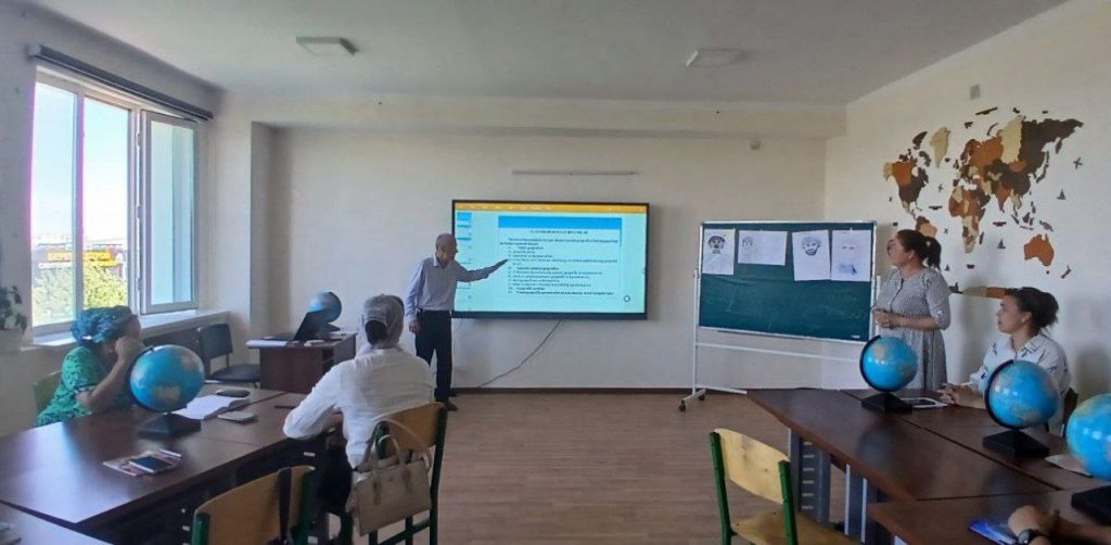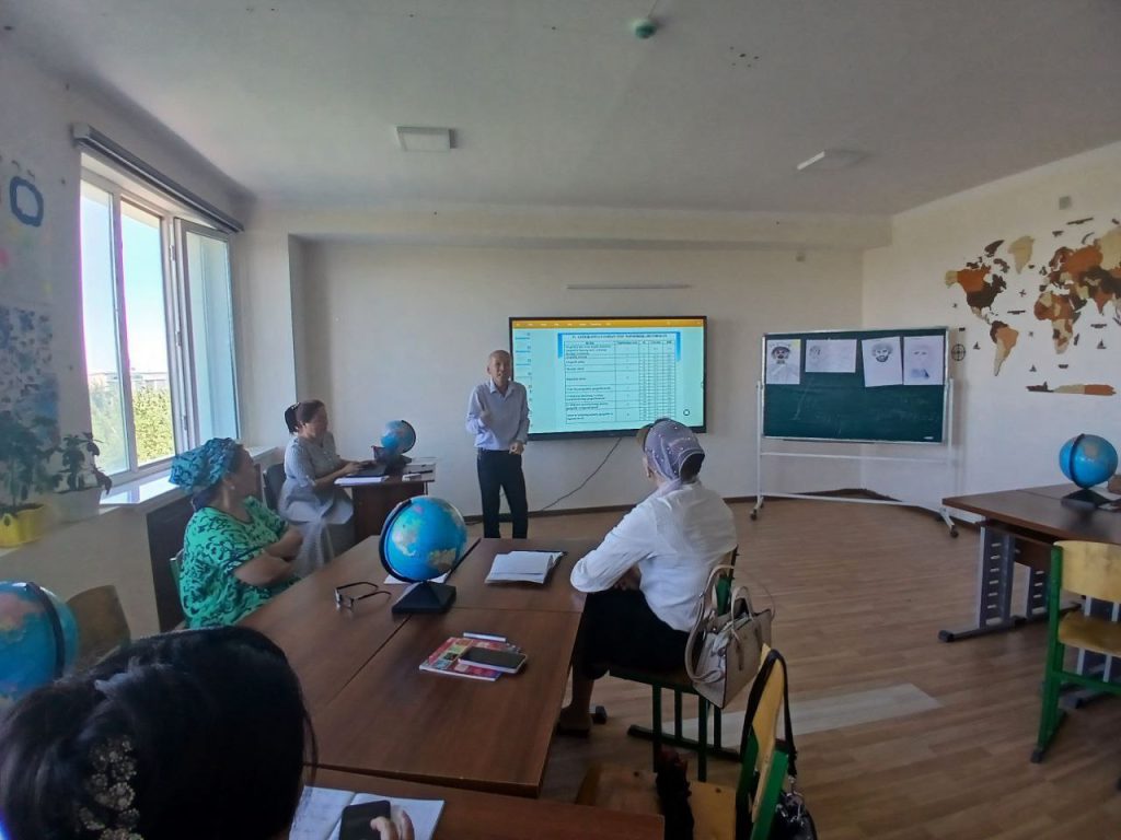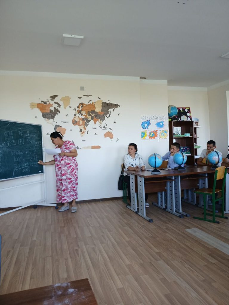 2024-jıl 5-iyun kúni Anıq hám tábiyiy pánlerdi oqıtıw metodikası kafedrası aǵa oqıtıwshısı G.Jiemuratova hám Metodikalıq xızmet kórsetiw bólimi metodisti J.Utepbergenovlar tárepinen qánigeligin arttırıwǵa kelgen geografiya páni tıńlawshılarına «Geografiya páninen Milliy sertifikat tapsırmaları hám olardıń analizi» temasında binar sabaq ótti.