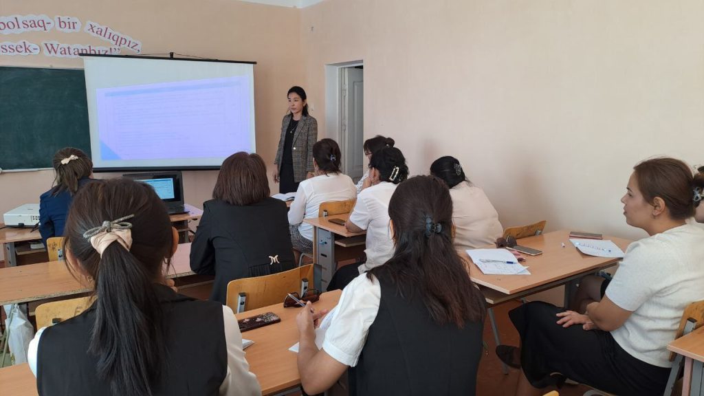 Qaraqalpaqstan Respublikası Nókis qalası Mektepke shekemgi hám bilimlendiriw bólimine qaraslı 10-sanlı ulıwma orta bilim beriw mektebinde Metodikalıq xızmet kórsetiw bólimi metodisti N.Artıqbaeva tárepinen «Kriteriyalarǵa tiykarlanǵan jaña bahalaw sisteması» temasında seminar ótkerildi.