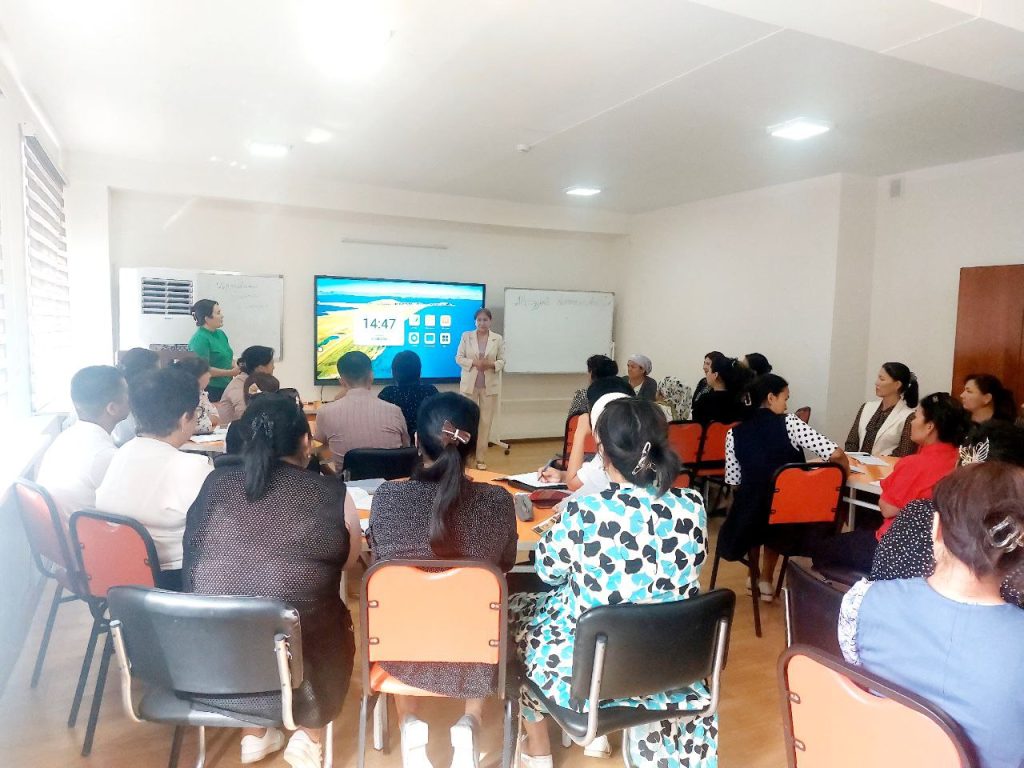 Seminar-treningte nátiyjeli kommunikaciyanıń abzallıqları hám sabaq procesinde oqıtıwshı menen oqıwshılardıń qarım-qatnasın bekkemlewdegi áhmiyetliligi haqqinda maǵlıwmat berildi.