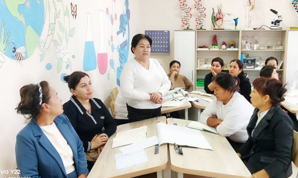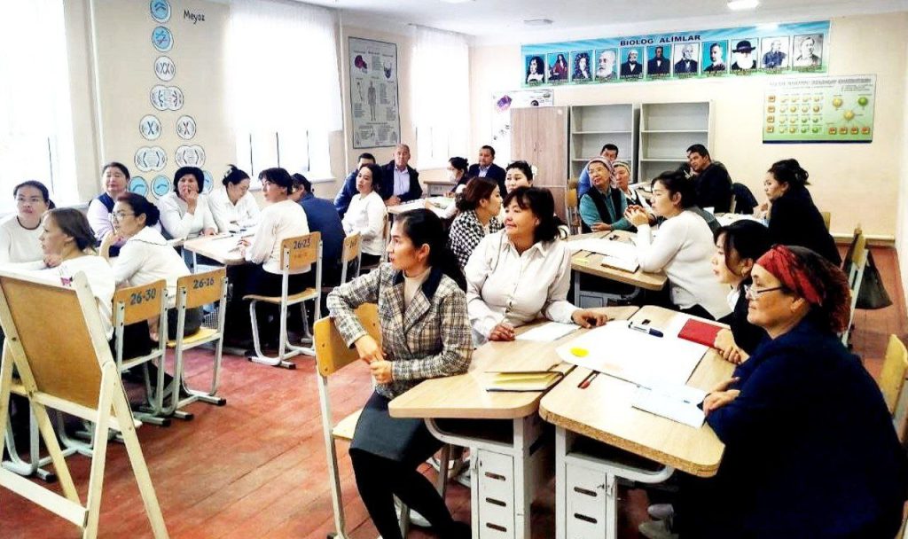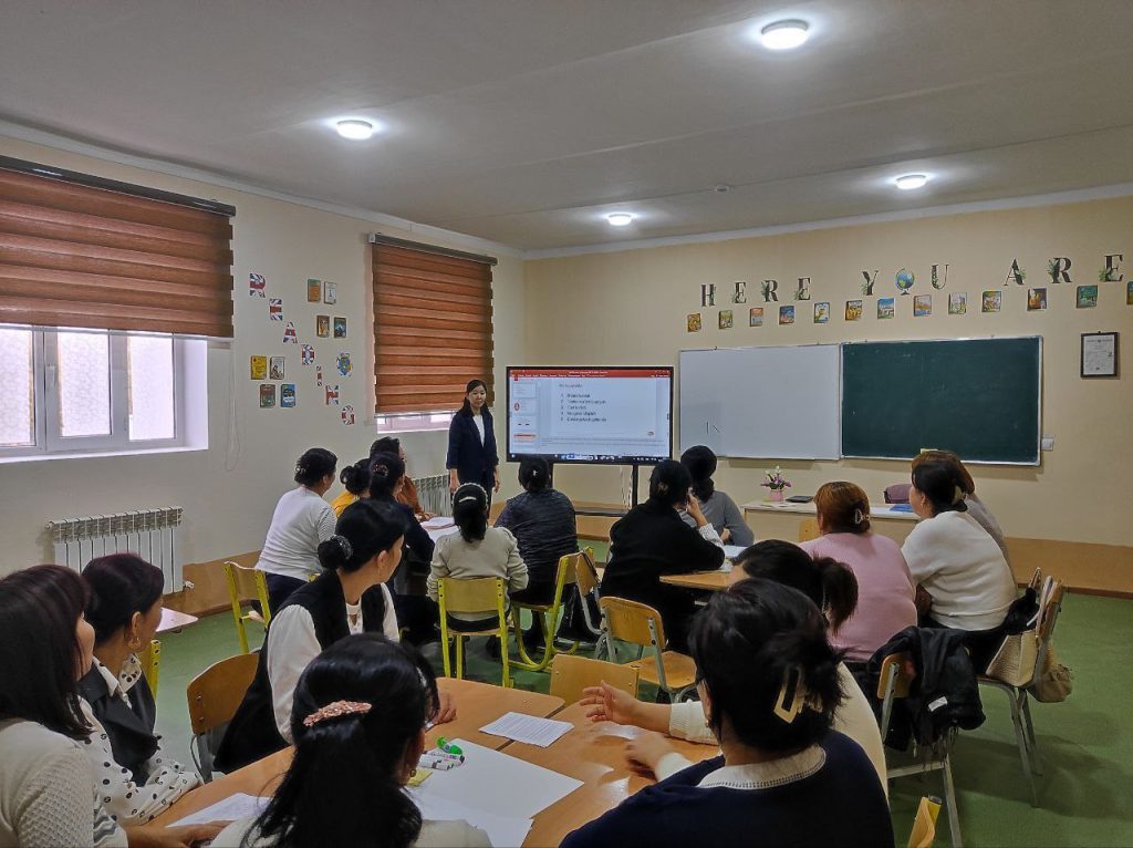 Trening qatnasıwshıları kásiplik rawajlanıw saatında mektep muǵallimleri ushın sabaqlar ótedi.