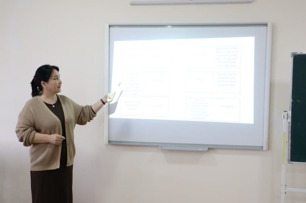 Sabaqta tıńlawshılarǵa oqıtıwdıń interaktiv usılları boyınsha kórsetpeler berildi.