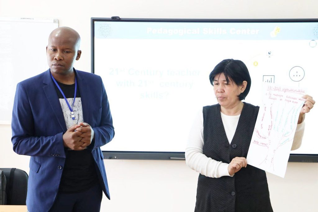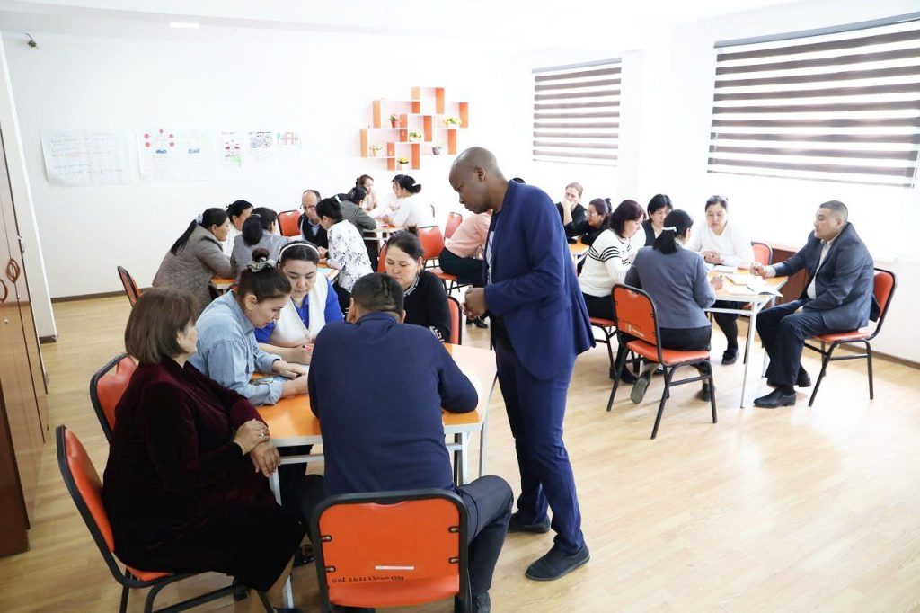 Búgin 26-mart kúni Prezident hám qánigelestirilgen mekteplerdiń aldıńǵı tájiriybelerin ulıwma orta bilim beriw mákemelerine engiziw maqsetinde Monsi Richard Mokete tárepinen Qaraqalpaqstan Respublikası Pedagogikalıq sheberlik orayında Baslawısh tálim kásiplik rawajlanıw kurs tıńlawshılarına sabaq alıp barıldı.