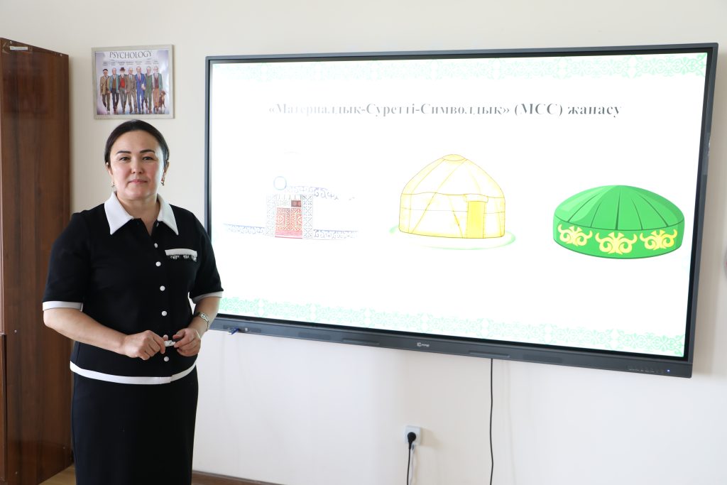 Búgin 9-aprel kúni Pedagogikalıq sheberlik oraydıń «Tillerdi oqıtıw metodikası» kafedrası aǵa oqıtıwshısı Gulistan Qanaatovanıń  Qazaq tili hám ádebiyatı páni  oqıtıwshıları úzliksiz kásiplik rawajlandırıw kursında «Materiallıq-súwretli-simvollıq (MSS) qatnastı qollanıw» temasında ashıq sabaǵı bolıp ótti.