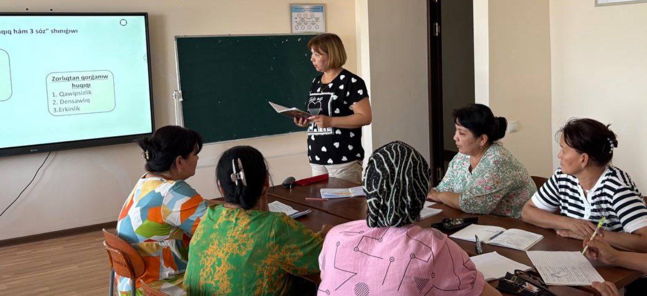(Qaraqalpaqsha) «Bala huqıqların qorǵaw boyınsha mámleketlik siyasat» temasında ashıq sabaq ótkerildi