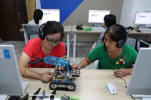 Qatnasıwshılar robotlardı programmalastırıw hám basqarıw boyınsha jańa bilim hám ámeliy kónlikpelerdi iyelemekte.