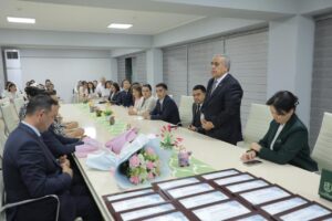 #Mektepke_shekemgi_bilimlendiriw “Metodikalıq sheberlik kúni: mektepke shekemgi bilimlendiriwde zamanagóy metodlar hám tájiriybe almasıw” “Metodikalıq sheberlik kúni” hám “Metodikalıq sheberlik saatı” ilajları sheńberinde shólkemlestirilgen qısqa múddetli oqıw kurslarınıń juwmaqlawshı sıylıqlaw máresimi bolıp ótti. 📅 Usı seminar 8-10-sentyabr kúnleri Mektepke shekemgi bilimlendiriw shólkemleri direktor hám qánigelerin qayta tayarlaw hám olardıń qánigeligin arttırıw institutında ótkerildi. Seminar dawamında master-trener hám pedagoglarǵa: Singapur tájiriybesi tiykarında kognitiv rawajlandırıw hám matematikanı oqitiw usılları; til hám sóylesiw kónlikpelerin qáliplestiriw metodları; Sociallıq-emocional rawajlanıwdı xoshametlew jolları; fizikalıq rawajlanıw hám motorika; Estetikalıq tárbiya hám dóretiwshilikti qollap-quwatlaw; Balalarda erkinlik hám dóretiwshilik qábiletin rawajlandırıw boyınsha jańa metodikalar usınıldı. Ilaj sońında qatnasıwshılarǵa sertifikatlar tapsırıldı.