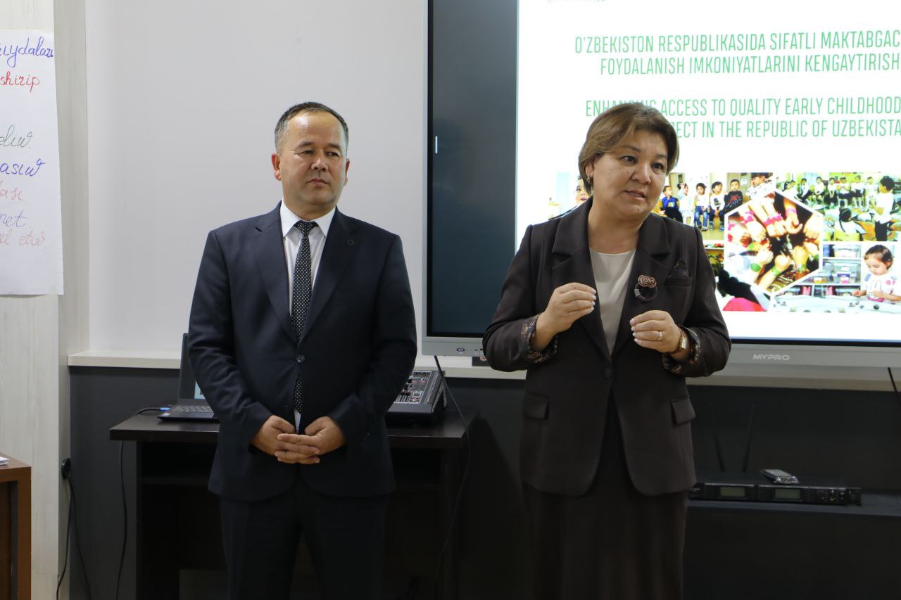 Qaraqalpaqstan Respublikası Pedagogikalıq sheberlik orayında “Mektepke shekemgi bilimlendiriwden paydalanıw imkaniyatların keńeytiw” joybarı sheńberinde ótkerilgen úsh kúnlik seminar-trening juwmaqlandı. Seminar-treningte Qaraqalpaqstan Respublikası Mektepke shekemgi hám mektep bilimlendiriw ministri orınbasarı M.Shlımbetova hám Pedagogikalıq sheberlik orayı direktorı wazıypasın waqtınsha atqarıwshı B.Iztileuov shıǵıp sóylep, qatnasıwshılarǵa trening dawamında alǵan ámeliy kónlikpelerin mektepke shekemgi bilimlendiriw shólkemlerinde qollanıw arqalı jumıs procesin nátiyjeli shólkemlestiriw, pedagogikalıq jumıs sapasın arttırıwǵa xızmet etetuǵınlıǵın atap ótti. Trening sabaqların UNICEFtiń erte rawajlanıw hám mektepke shekemgi bilimlendiriw máseleleri boyınsha qánigeleri hám xalıqaralıq ekspert Kristian Fabbi alıp bardı. Seminar-trening dawamında qatnasıwshılar mektepke shekemgi bilimlendiriwdiń sapasın arttırıw, aldıńǵı pedagogikalıq hám innovaciyalıq qatnaslardı ámeliyatqa engiziw, sonday-aq, balalardıń erte rawajlanıwın qollap-quwatlaw boyınsha jańa bilim hám kónlikpelerge iye boldı. Ilaj sońında qatnasıwshılarǵa sertifikatlar saltanatlı túrde tapsırıldı.