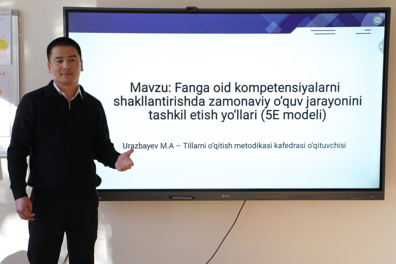 “Pánge tiyisli kompetenciyalardı qáliplestiriwde zamanagóy oqıw procesin shólkemlestiriw jolları: 5E tálim modeli” atamasında ámeliy seminar ótkerildi