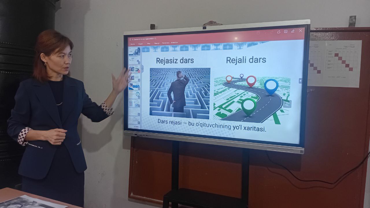 Seminar Metodikalıq xızmet kórsetiw bólimi metodistlerinen ibarat mobil metodikalıq topar tárepinen Beruniy rayonı 33-sanlı ulıwma orta bilim beriw mektebinde ótkerildi. Ilaj dawamında oqıtıwshılarǵa oqıw procesin nátiyjeli shólkemlestiriw, sabaq sapasın hám metodikasın jaqsılaw, zamanagóy pedagogikalıq texnologiyalardı ámeliyatqa engiziw boyınsha járdem kórsetildi.