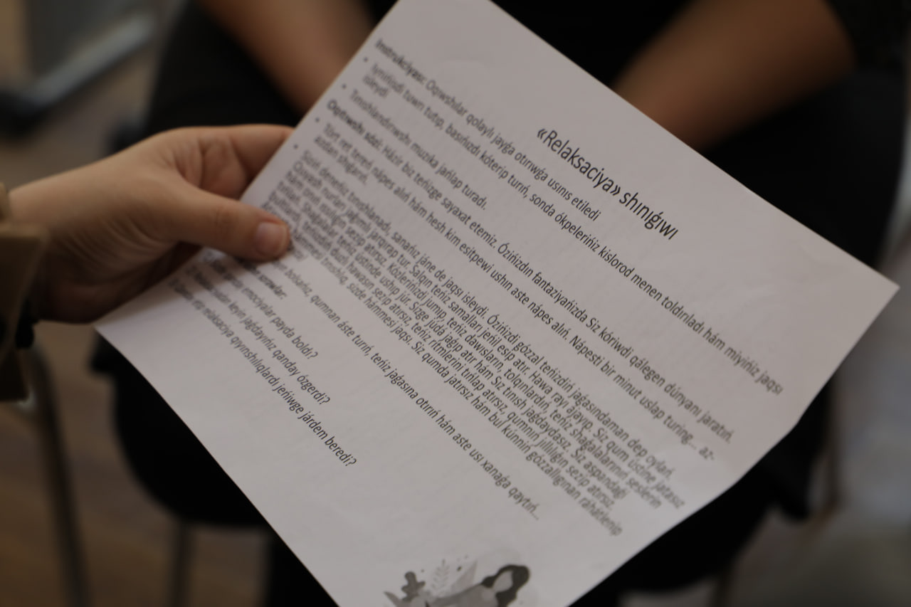 Ilaj dawamında qatnasıwshılarǵa affektiv tarawda qollanılatuǵın interaktiv usıllar, ámeliy sabaqlar arqalı kórsetip berildi.