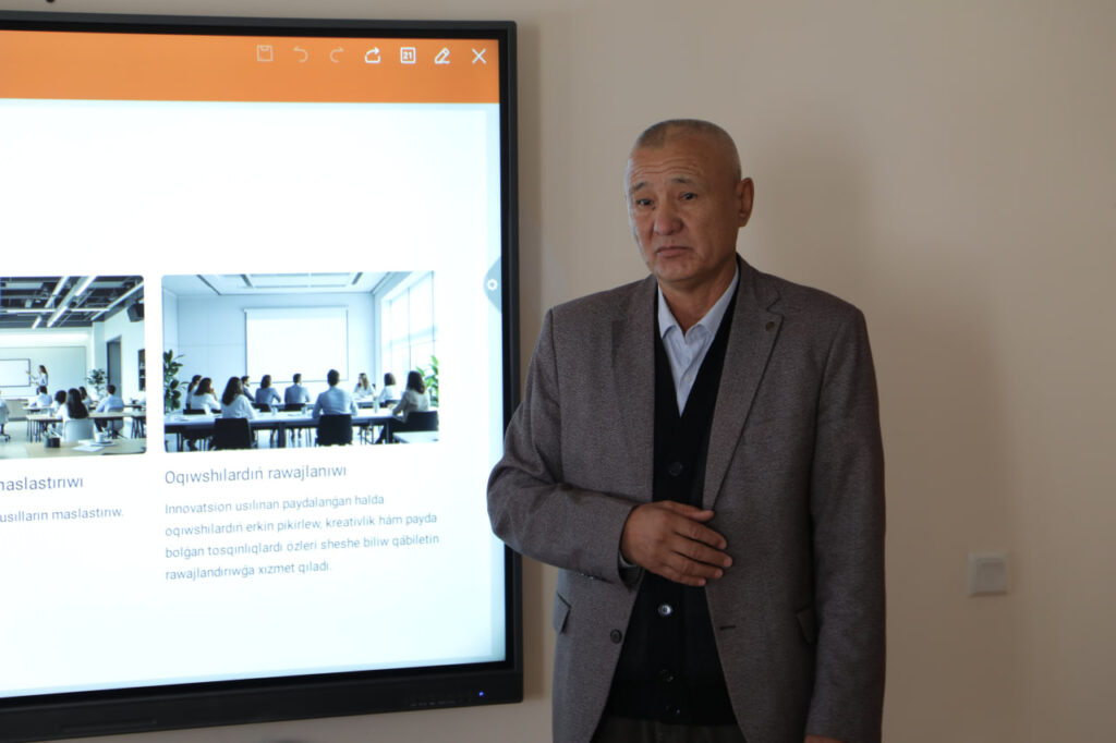 Búgin noyabr ayında shólkemlestirilgen 100 saatlıq qánigelik arttırıw kursı tıńlawshılarınıń juwmaqlawshı attestaciya sınaqları ótkerildi. ️Bunda oqıtıwshılardıń kurs dawamında úyrengen bilim hám kónlikpeleri bahalandı. Juwmaqlawshı attestaciya test, joybar jumısı hám mikrodars prezentaciyası túrinde alıp barıldı. Tıńlawshılar ózleri tańlaǵan temalarda erkin islew hám pedagogikalıq texnologiyalardı ámeliyatta qollanıw kónlikpelerin kórsetti. Kurs procesinde tıńlawshılar birgelikte islew arqalı jańa metodikalardı qollanıw hám innovaciyalıq qatnaslardı ózlestirgenligin kórsetiwi belgilengen.