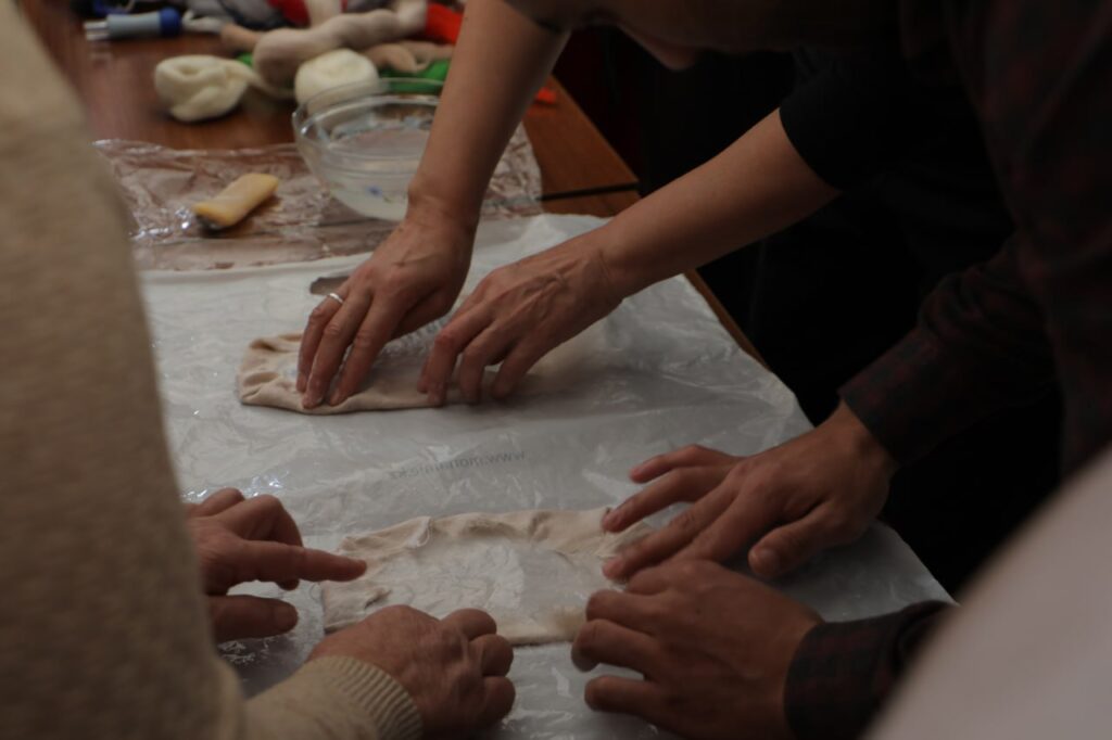 Master-klass jarayonida felting texnikasining asosiy turlari, jumladan, nam va quruq felting usullari bilan tanishtirilib, ularni amaliyotda qo‘llash imkoniyati yaratildi.