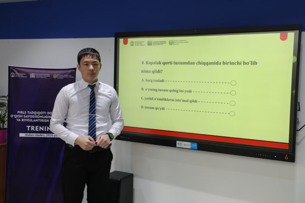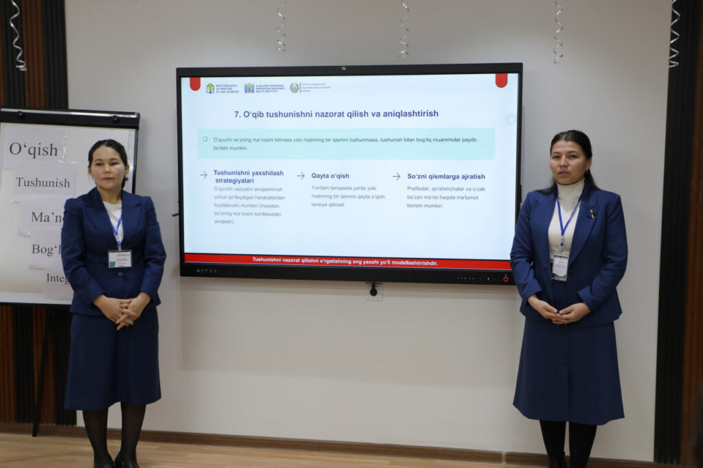 “Oqıw sawatlılıǵın bahalaw hám rawajlandırıw” temasındaǵı trening sabaqları óz jumısın izbe-iz dawam ettirmekte