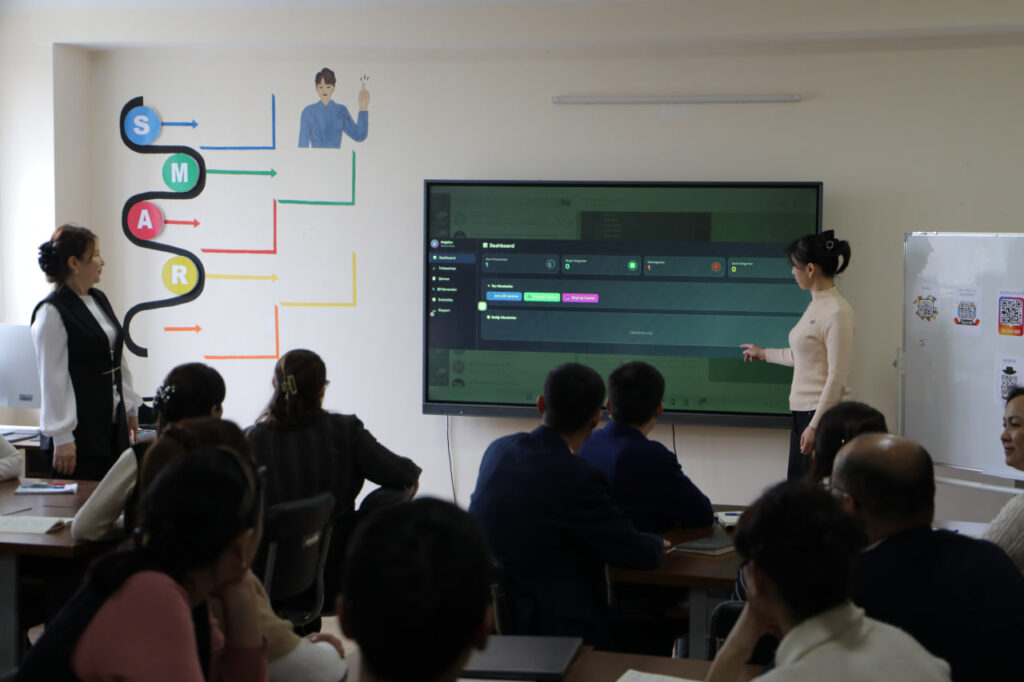 Informatika hám axborot texnologiyaları páni muǵallimleri ushın shólkemlestirilgen qánigeligin arttırıw kursları sheńberinde sabaqlar joybarǵa tiykarlanǵan bilimlendiriw (Project-Based Learning) qatnası tiykarında alıp barılmaqta. Kurs tıńlawshılarına eki háptege mólsherlengen ámeliy joybar tapsırması berildi. Joybar teması – oqıwshılardıń sabaqqa qatnasıwın qadaǵalaw ushın mobil yamasa veb-qosımsha jaratıw. Bul joybar procesinde tıńlawshılar tómendegi áhmiyetli kásiplik kompetenciyalardı rawajlandırdı: programmalıq sheshimlerdi joybarlastırıw hám islep shıǵıw; sanlı texnologiyalardı bilimlendiriw procesine nátiyjeli engiziw; jámáátte islew hám wazıypalardı bólistiriw; real mashqalanı sheshiwge qaratılǵan ámeliy qosımshalar jaratıw. Búgin joybar jumıslarınıń prezentaciyası bolıp ótti. Onda 5 topar tárepinen islep shıǵılǵan qosımshalar kórsetilip, olardıń funkcionallıǵı, qolaylıǵı hám bilimlendiriw procesinde qollanıw imkaniyatları hár tárepleme dodalandı. Sabaqlardı Pedagogikalıq sheberlik orayınıń oqıtıwshısı Dilfuza Kutlımuratova alıp bardı. Oqıw procesinde tıńlawshılarǵa joybarǵa tiykarlanǵan bilimlendiriwdiń mazmunı, onı informatika hám IT pánlerin oqıtıwda qollanıw usılları hám ámeliy joybarlardı nátiyjeli shólkemlestiriw boyınsha metodikalıq usınıslar berildi.