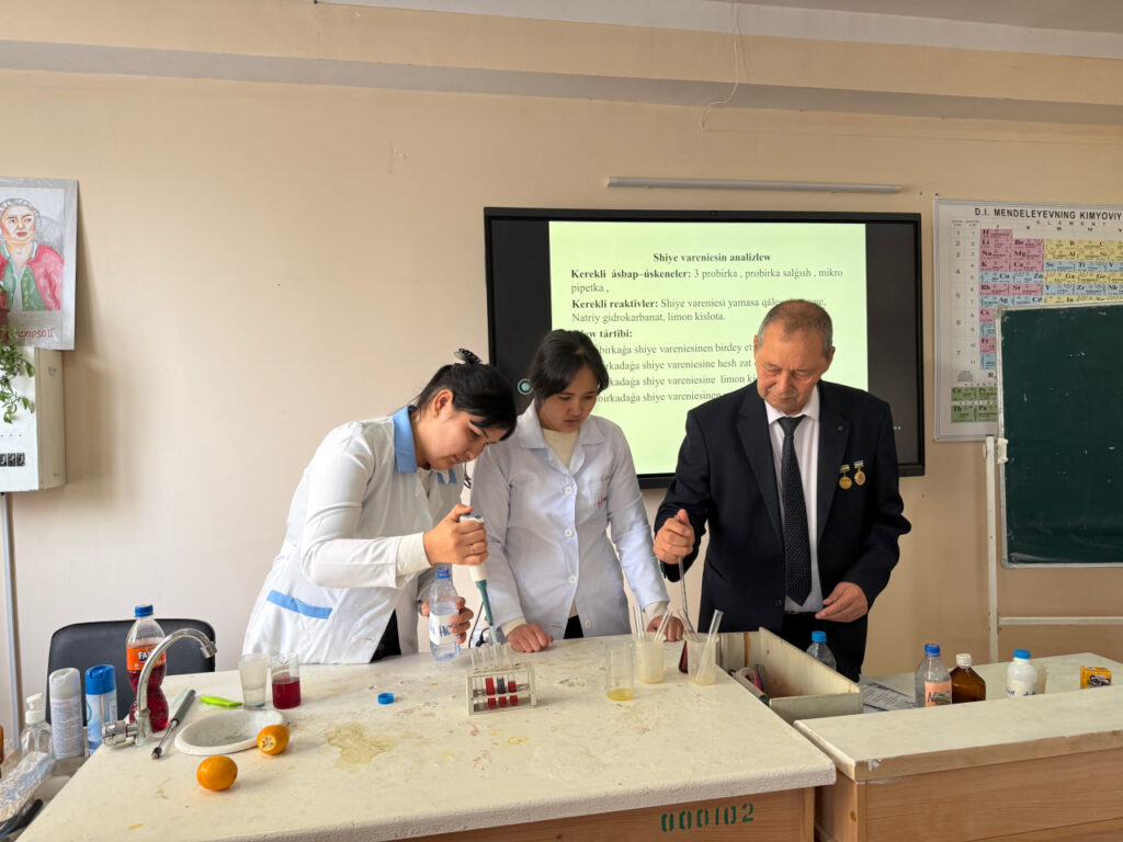 Ámeliy sabaqlar ximiya dógerekleri, pán háptelikleri, viktorinalar, ekskursiyalar hám ximiya tariyxı hám belgili ilimpazlarǵa baǵıshlanǵan ilajlardı shólkemlestiriw baǵdarlarında alıp barıldı. Interaktiv túrde ótken sabaqta tıńlawshılar toparlarda islesti, tájiriybe almasıdı hám ámeliy tapsırmalardı orınladı.