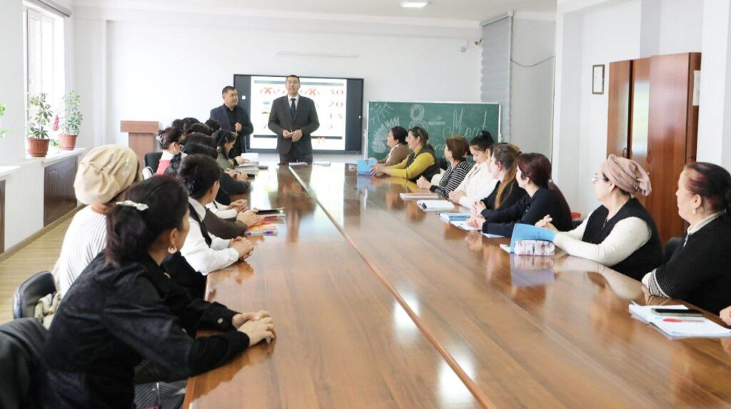8-mart – Xalıqaralıq hayal-qızlar bayramı múnásibeti menen Qaraqalpaqstan Respublikası Pedagogikalıq sheberlik orayı direktorınıń akademiyalıq iskerlik boyınsha orınbasarı A.Qaypnazarov oqıw sabaqları ótip atırǵan sabaqlarǵa kirip, tıńlawshı hayal-qızlardı bayram menen qutlıqladı. Ol óz sózinde muǵallimshilik kásibi jámiyette eń ullı hám maqtanıshlı kásiplerden biri ekenin ayrıqsha atap ótip, tálim-tárbiya procesinde hayal pedagoglardıń ornı hám pidákerlik miyneti joqarı qádirlenetuǵının atap ótti. Sonday-aq, barlıq hayal-qızlarǵa bekkem densawlıq, shańaraqlıq baxıt-ıǵbal hám kásiplik jumıslarında úlken tabıslar tiledi.