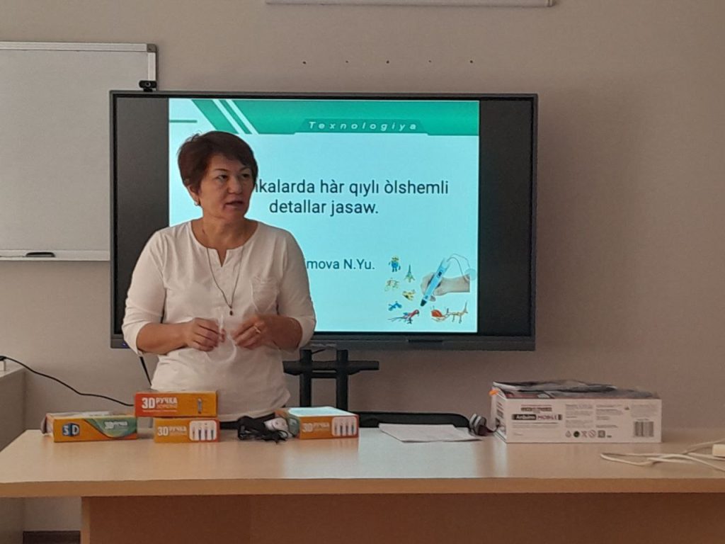 “3D ruchkalar haqida tushuncha va unda har xil geometrik shakllar yasash”, “Polimer loyi haqida tushuncha va ulardan buyumlar yasah”; “Kasblar klassifikaciyasi. Kasblarda mehnat turlarining ta’rifi” mavzulari koʻrgazmali tashkil qilindi. Seminar soʻngida tinglovchilar bilan fikr mulohazalar olib borildi.
