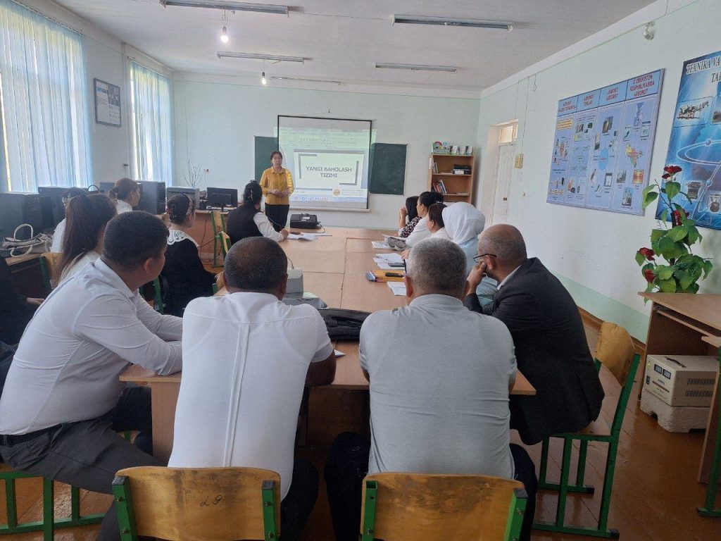 Seminarda maktab rahbarlari va o‘qituvchilariga yangi baholash tizimini joriy etish tartibi batafsil tushuntirilib, qiziqtirgan savollarga atroflicha javob berildi hamda e.maktab.uz elektron platformasida qanday ish olib borish bo‘yicha ma’lumotlar berildi.