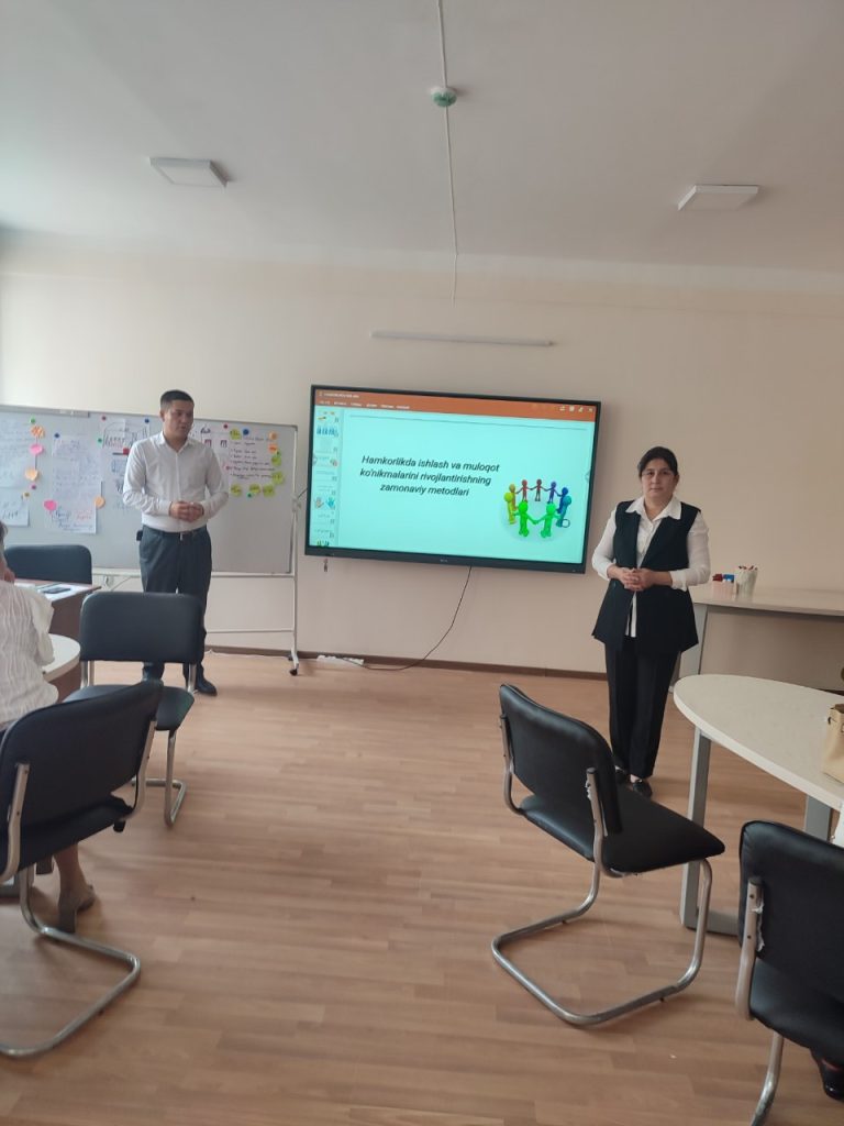 Ayni-paytda “Hamkorlikda ishlash va muloqot ko‘nikmalarini rivojlantirishning zamonaviy metodlari” mavzusida seminar – trening mashg‘uloti o‘tkazilmoqta