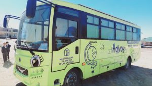 Bugun, ushbu avtobus yordamida tajriba-sinov tariqasida «Maktabgacha boshlang‘ich va maxsus ta’lim metodikalari» kafedrasi o‘qituvchilari tomonidan respublikamizning olis va chekka hududlariga kiruvchi Nukus shahri «Qoratov» mahallasida joylashgan 44-sonli maktabgacha ta’lim tashkilotining pedagog kadrlari uchun mobil malaka oshirish kursi tashkil etilmoqda.