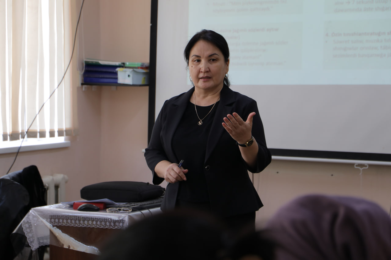 “Ijtimoiy-iqtisodiy fanlar metodikasi” kafedrasining katta o‘qituvchisi Nurjamal Tleumuratova tomonidan Tarbiya fani o‘qituvchilarining uzluksiz kasbiy rivojlantirish (malaka oshirish) kursi tinglovchilari uchun “Tarbiya fanini o‘qitishda affektiv ko‘nikmalarni rivojlantirish” mavzusida metodik seminar tashkil etildi. Seminarning asosiy maqsadi — Tarbiya fanida affektiv ko‘nikmalarning mazmuni va ularning bosqichlarini yoritish, shuningdek, o‘quvchilarda empatiya, qadriyatlarni qabul qilish va munosabat bildirish kabi affektiv kompetensiyalarni shakllantirishga qaratilgan samarali metodlarni tinglovchilarga o‘rgatishdan iborat bo‘ldi. Tadbir davomida ishtirokchilarga affektiv sohada qo‘llaniladigan interfaol usullar, amaliy mashg‘ulotlar orqali ko‘rsatib berildi.
