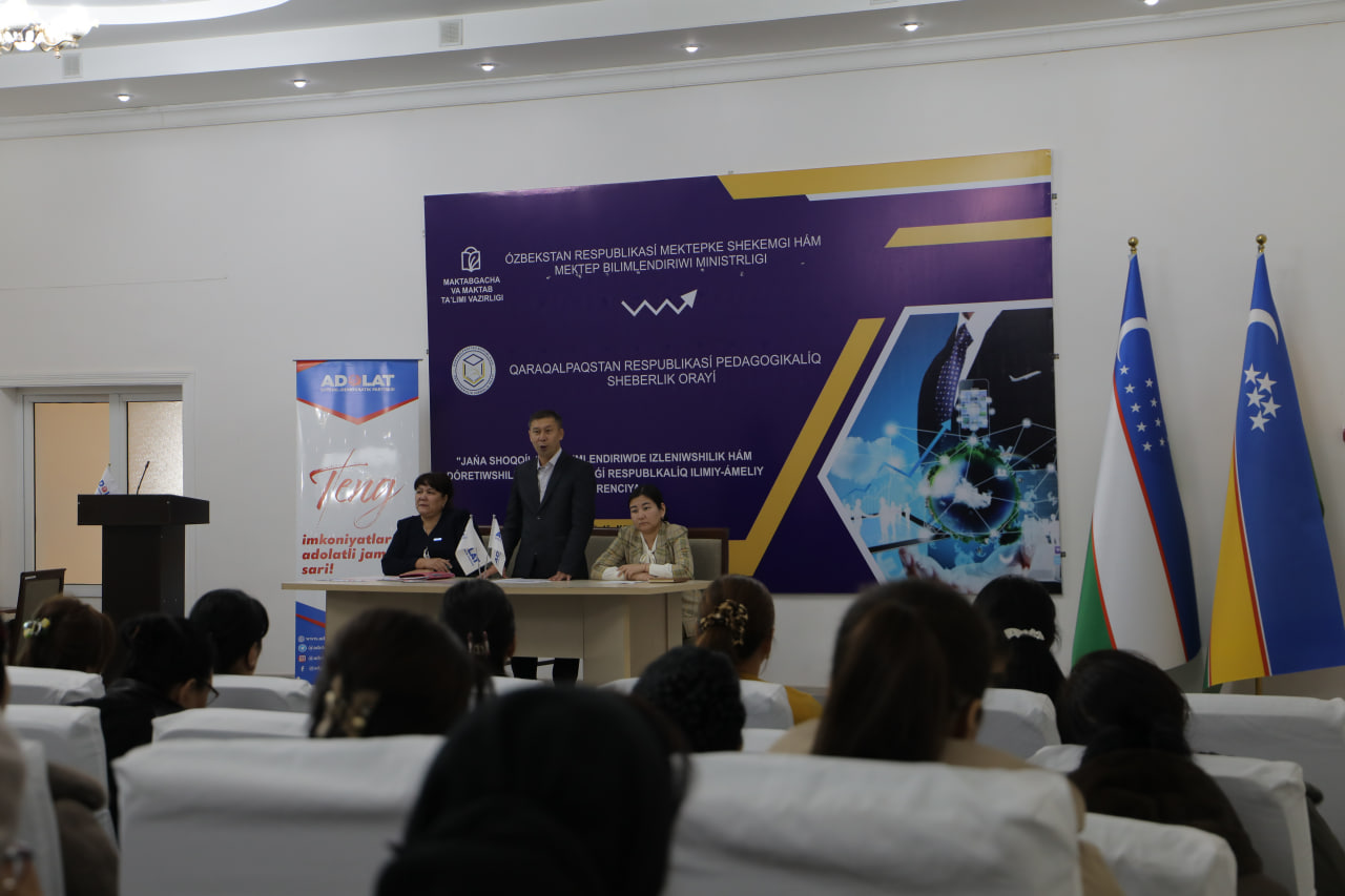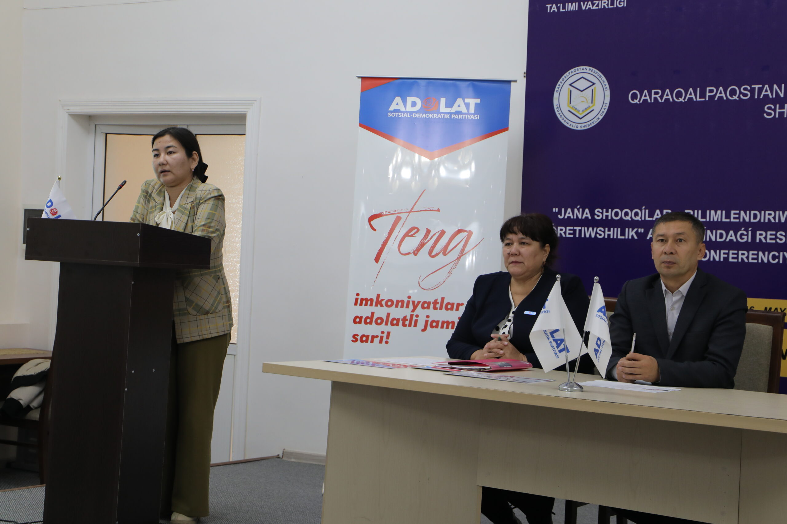 Unda Qoraqalpog‘iston Respublikasi Adliya vazirligining bosh maslahatchisi M.Xo‘jaqmedova, O‘zbekiston «Adolat» SDP Qoraqalpog‘iston Respublikasi Kengashi raisining o‘rinbosari Sh.To‘reshova, markaz kafedra mudirlari, professor-o‘qituvchilar va tinglovchilar ishtirok etdi.