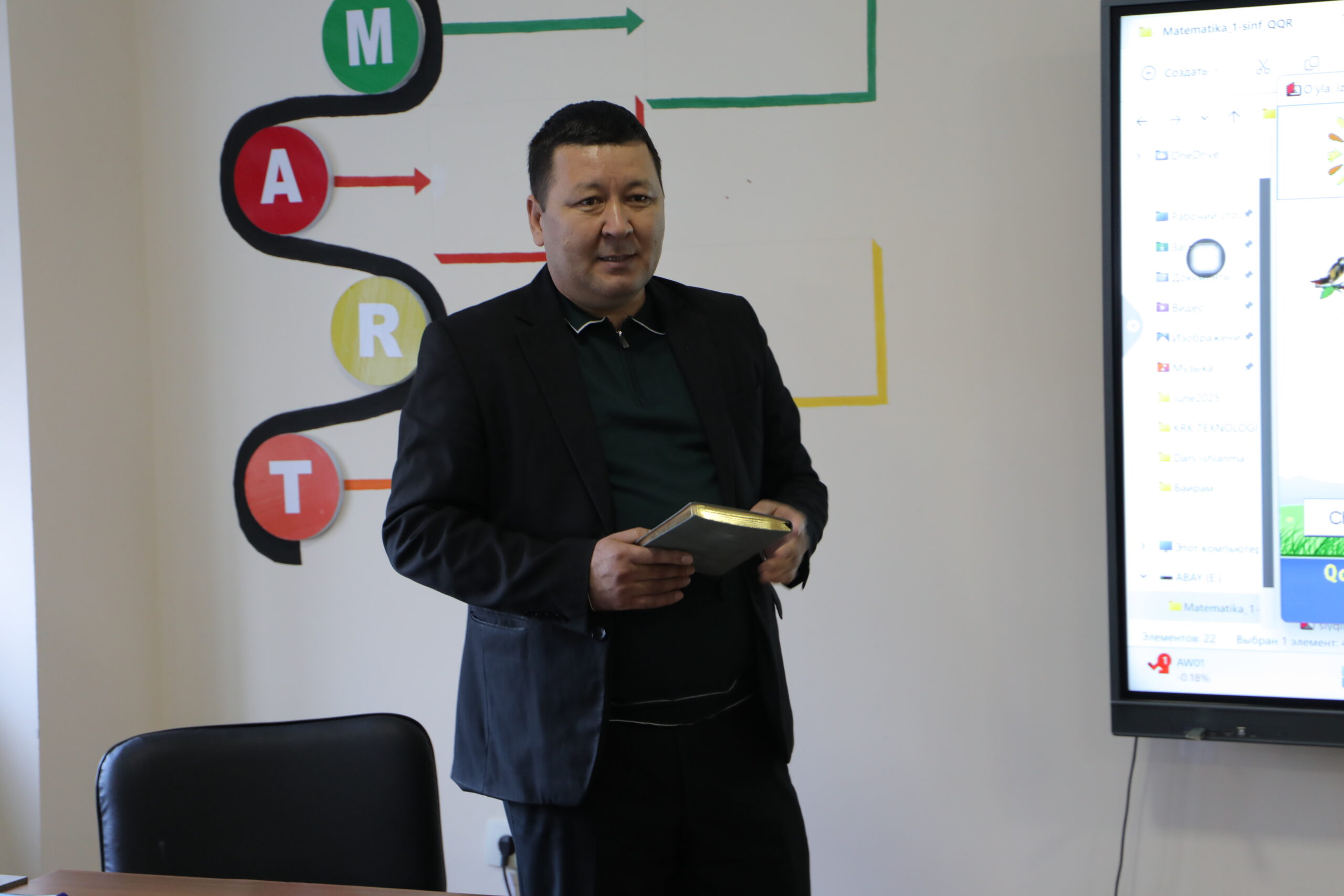 Pedagogik mahorat markazimiz da Noyabr oyida Informatika va IT kursi malaka oshirish kurslarimizni yanada boyitgan, ilmiy salohiyati va innovatsion yondashuvi bilan ajralib turadigan ustoz — Saparniyazov Abay Saburovich bo‘ldi. Informatika va axborot texnologiyalari sohasida 27 yildan buyon fidokorona faoliyat yuritib kelayotgan, yuzlab iqtidorli shogirdlar yetishtirgan, “Shuhrat” medali sohibi bo‘lgan ushbu ustoz bizning Kasbiy rivojlanish kursimizda o‘zining yangi ta’limiy proekt dasturi haqida ma’ruza qilib berdi. Ustoz taqdim etgan innovatsion loyiha: Abay Saburovich bugungi kunda ta’lim tizimida eng zarur bo‘lgan muammoni — 1-sinf o‘quvchilarining mustaqil o‘qish, mustaqil mashq qilish va o‘z ustida ishlash ko‘nikmalarini rivojlantirish masalasini hal etishga qaratilgan katta loyiha ustida ishlaganini ta’kidladi. Yaratilgan dasturning afzalliklari: • 1-sinf matematika fanini mustaqil o‘rganishga yordam beradi • 5 tilda ishlab chiqilgan: o‘zbek, qoraqalpoq, rus, qozoq va turkman Mamlakatimizdagi ko‘p tillilik tamoyiliga to‘liq mos • Interaktiv mashqlar, o‘yinlar, testlar, audio va video ko‘rsatmalar jamlangan • Mavzular bolalarning yoshi va psixologiyasiga mos tarzda ishlab chiqilgan • Ota-onalar uchun qulay nazorat tizimi mavjud • Matematikaning asosiy tushunchalari qiziqarli va sodda shaklda beriladi Loyihaning asosiy maqsadi: ✨ Kichik yoshdagi o‘quvchilarda: • mustaqil fikrlash, • mantiqiy tafakkur, • hisoblash malakasi, • o‘qishga qiziqish kabi ko‘nikmalarni shakllantirish. Bu loyiha nafaqat o‘quvchilar, balki ota-onalar va o‘qituvchilar uchun ham qo‘shimcha yordamchi bo‘lib xizmat qiladi. Pedagogik mahorat markazi jamoasi uchun faxr: Saparniyazov Abay Saburovich kabi ilmli, tajribali, innovatsion fikrlaydigan ustozlar bilan ishlash, ularning tajribasidan o‘rnak olish — biz uchun ulkan sharaf. Markazimizdagi tinglovchilar ustozning loyihasini katta qiziqish bilan tinglashdi va uni boshlang‘ich ta’limga qo‘shilgan katta hissa deb baholashdi. Ustozning mukofotlari va yutuqlari: • “Shuhrat” medali (2017) • “O‘zbekiston va Qoraqalpog‘iston Respublikasi xalq ta’limi a’lоchisi” ko‘krak nishonlari • Qoraqalpog‘iston Respublikasi Jo‘qorg‘i Kengesining bir necha bor “Fahriy yorliq”lari • Google Certified Educator (Level 1, Level 2) • Coursera xalqaro kurslaridan 40+ sertifikatlar • “Bir million dasturchi” platformasi bo‘yicha o‘quvchilari bilan sama’ralari • Raqamli ta’lim resurslari bo‘yicha Respublika bosqichida bir necha bor I o‘rin sovrindori • O‘quv-uslubiy qo‘llanmalar va informatika bo‘yicha metodik kitoblar muallifi Shogirdlari – uning eng katta yutug‘i Ustozning tayyorlagan o‘quvchilari 1999 yildan 2025 yilgacha: 🏆 Respublika fan olimpiadalari 🏆 “Bilimlar bellashuvi” musobaqalari 🏆 IT tanlovlar 🏆 Yangi texnologiyalar bo‘yicha festivallar doimiy ravishda I, II va III o‘rinlarni egallab kelishgan. Bugun esa ular: — dasturchilar, — o‘qituvchilar, — IT mutaxassislari, — loyihalar rahbarlari, — ta’lim sohasidagi liderlar sifatida muvaffaqiyatli faoliyat yuritmoqda. Saparniyazov Abay Saburovich — bu nafaqat ustoz, balki: -yoshlarning orzusi va kelajagi uchun mas’uliyatni zimmasiga olgan inson; -yangilik yaratuvchi, izlanishdan to‘xtamaydigan innovator; -o‘z shogirdlari bilan faxrlanib, ularni katta marralarga yetaklaydigan murabbiy; -zamonaviy raqamli ta’limning faol targ‘ibotchisi. Abay Saburovich, mazmunli taqdimotingiz, samimiy fikrlaringiz va innovatsion yondashuvingiz uchun rahmat! Siz kabi ustozlar ta’limimizning haqiqiy tayanchi va ishonchli kelajagidir.
