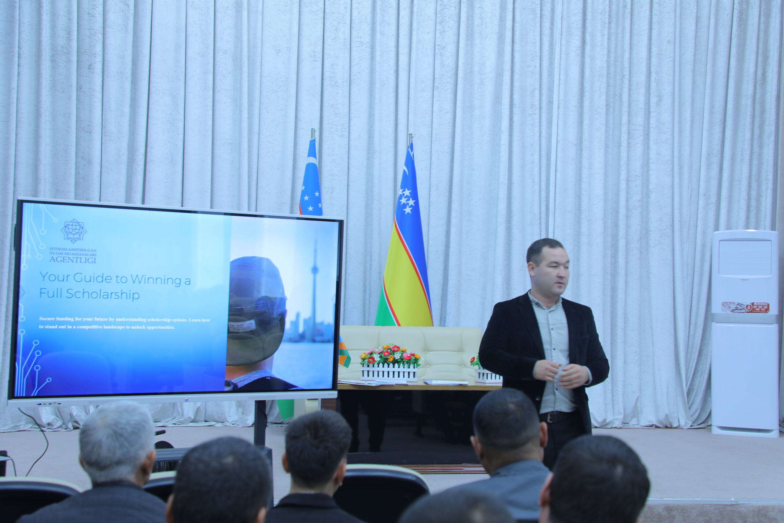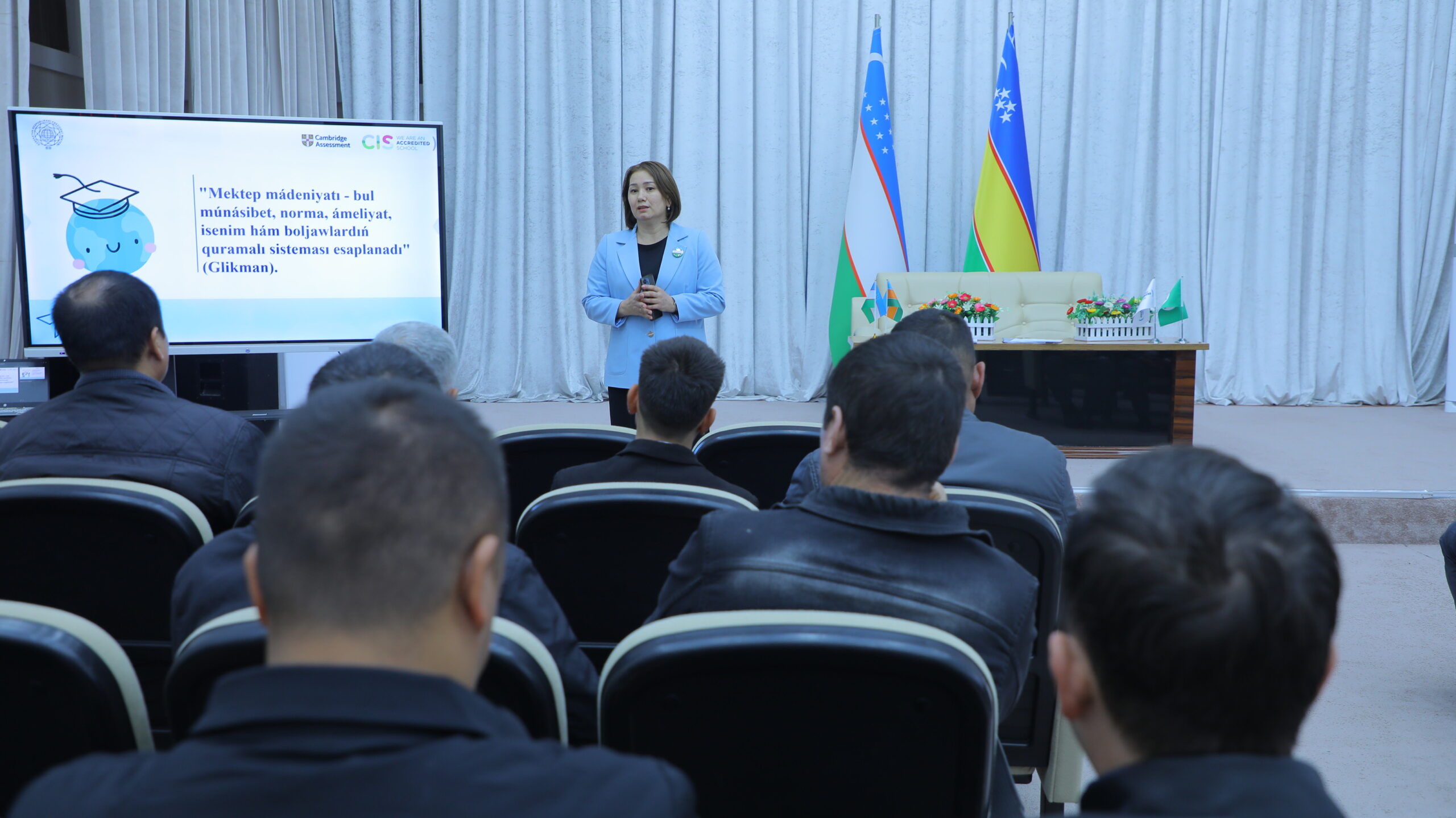 Tadbir davomida Ma’naviy-ma’rifiy ishlar bo‘yicha direktor o‘rinbosari Z. Begmuratova Prezident maktabida o‘quvchilar uchun yaratilgan imkoniyatlar, ma’naviy-ma’rifiy ishlar tizimi hamda ushbu yo‘nalishlarda olib borilayotgan amaliy faoliyat haqida batafsil ma’lumot berdi.