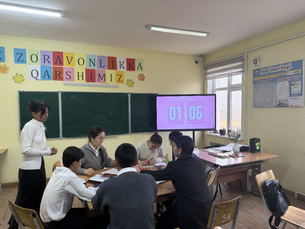 Ochiq dars davomida o‘qituvchi zamonaviy pedagogik texnologiyalar asosida qiziqarli va samarali ta’lim jarayonini tashkil etdi.